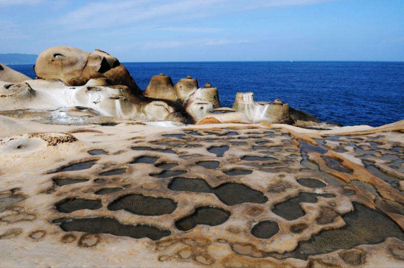 野柳地質(zhì)公園,是臺(tái)灣東北部景區(qū)。據(jù)說,因地殼運(yùn)動(dòng),導(dǎo)致野柳地區(qū)的陸地山脈延伸進(jìn)入海中成為岬角。之后,經(jīng)過大自然千萬年的洗禮,巖石風(fēng)化,海水侵蝕,于是便塑造了它今日的各種驚世奇觀。